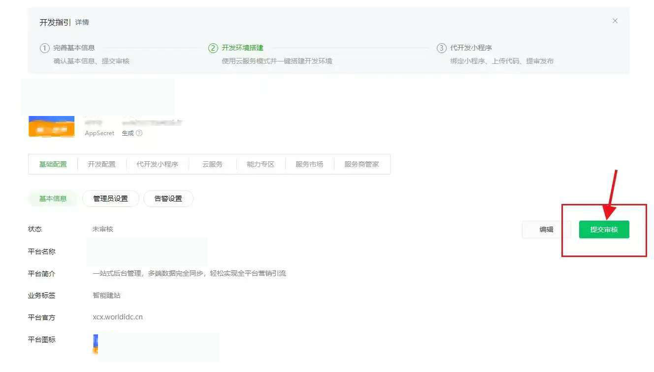 (1)获取第三方平台的Appid和Appsecret